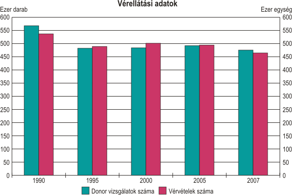 Nemzetközi tapasztalatok szerint egy ország betegellátási szükségletét biztonságosan a lakosság 5%-ának megfelelő számú véradással lehet kielégíteni. A véradások ezer lakosra jutó száma hazánkban azonos az európai átlaggal. 2007-ben 464 ezer vérvételt szervezett a Magyar Vöröskereszt, 75%-uk kiszállásokon történt. Ezek során a véradót munkahelyén, iskolájában vagy előre meghirdetett rendezvények keretében keresték fel. 2001 óta csak 5%-kal csökkent a kiszállásos véradások száma, de a közel azonos vérmennyiséghez 28%-kal több kiszállás alkalmával sikerült hozzájutni.